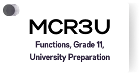 Grade 11 Function (MCR3U) course introduces the mathematical concept of the function by extending students’ experiences with linear and quadratic relations. Students will investigate properties of discrete and continuous functions, including trigonometric and exponential functions; represent functions numerically, algebraically, and graphically; solve problems involving applications of functions; investigate inverse functions; and develop facility in determining equivalent algebraic expressions. Students will reason mathematically and communicate their thinking as they solve multi-step problems.